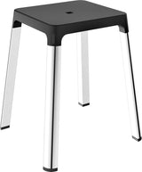 Keuco's Axess Shower Seat is suitable for use in wet rooms or in the shower. The feet have non-slip pads, and the seat is 13-5/16" square - not "chintzy". The height is set at 18-3/4" which is the height of almost all regular chairs. The aluminum legs splay outward for add stability. Five finish combinations: Polished Chrome/Black, Polished Chrome/White, Silver Anodized Aluminum/Black, Silver Anodized Aluminum/White, and Matte Black/ Black.