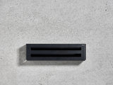 - Overall dimensions: 12-5/8" Wide x 3-11/19" High x 3-3/4" Projection. Mounting is hidden.