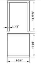 - Overall height is 18-7/8". The exterior dimensions are 13-3/8" x 14-3/8". Legs are 1-3/8" Wide.