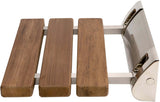 - Alfi brand ADA folding Teak Shower Seat with Polished Chrome or Brushed Nickel Accents has a thick solid Teak seating Sufrace and easily folds up and down in the shower.