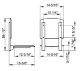 - The seat is 14-15/16" Wide x 12-3/16" Deep. Total depth to the wall is 15-5/8". Overall height, including the brackets: 19-1/2".