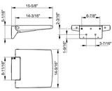 - The seat is 14-9/16" Wide at the back and slightly tapered toward the front. The total depth to the wall is 15-5/8". Seat depthi is 14-3/16". The mounting bracket is 8-11/16" Wide x 5-1/16" High and has five mounting points.