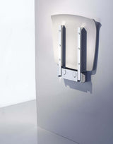 The Smedbo folding shower wall-mounted seat in Slate Grey or White, and is made with Polished Chrome Zinc and Aluminum. When installed according to instructions, it supports up to 330 lbs. The seat projects 14.85" from the wall and is 14.6" wide at the front edge. It easily folds up and out of the way when not in use.