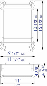 - Overall dimensions: 11.25 Wide x 4.75" Deep x 15.5" High overall. The glass shelves are 11" W x 4.375" Deep and the distance between the shelves is 10.5".