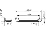 - Dimensions: 15-3/4" Wide overall x 2-3/8" High x 4-5/16" Depth. Note that the bar itself is only about 13" wide. The Squeegee adheres magnetically beneath the shelf and adds about 1/2" to the overall height.
