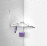Smedbo's Sideline Collection Corner Shower Shelf is made of stainless steel and in your choice of Polished Chrome or Matte Black Finishes. There's a slot in the shelf to keep it from gathering water, and the mounting is with concealed hardware, included. 9.84" wide x 4.4" front to back, with a rim to keep things from accidentally sliding off. Matte Black or Polished Chrome.
