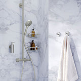 Uplift your shampoo and body wash bottles from the floor. These handy shower baskets are made of solid brass and therefore impossible to rust. They're permanently installed with concealed mounting hardware - included. 9.84" Wide x 2.4" High x 4" Front-to-Back. Choose from Polished Chrome, Brushed Nickel, or Polished Brass, each with a 10-Year manufacturer's warranty.