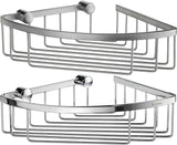 What could be more convenient than a corner shower basket. Your shampoo and body wash bottles can be exiled from the floor, forever! These heavy-wire handy shower baskets are made of heavy solid brass and therefore impossible to rust. They're permanently installed with concealed mounting hardware - included. 7.7" Wide on each side x 2.4" High. Mounting centers at 4.25". Choose from Brushed or Polished Chrome, both with a 10-Year manufacturer's warranty.