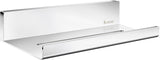 Made of Stainless Steel it's impossible for this shelf to ever rust. It's heavily plated in Polished Chrome or Powder Coated in Matte Black for a sleek appearance, and the shelf surface is slotted for complete drainage. Mounting is accomplished through the tile with the mounting hardware supplied. Glue application is also possible, following the instructions included. After mounting, the mounting hardware is hidden from view. The shelf dimensions overall are 9.8" Wide x 4.4" Deep. 10-Year manufacturer's warranty.