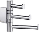 This solid, Sold Brass tripe swing arm towel hook is a great space save. It has the capacity to hold three towels and take up almost no wall space. It can even be used in or near a corner. Mounting is accomplished with the supplied concealed mounting hardware system. Polished Chrome finish over solid brass.