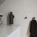 Designed and made of 100% Brass by Smedbo of Sweden, this attractive wall-mounted soap or lotion dispenser doesn't occupy a spot on the vanity, since it's wall-mounted. The capacity is 200ml (6.75 fl. oz.) - an elegant combination of design and function becoming an extra hygienic accountrement in your bathroom or powder room. Use two - one for hand soap and another for lotion. The Brushed Brass finish is a solid color with streaks of metal shavings that run across the material giving the surface a beautiful look. Alternately, the dispenser is available in trending Matte Black - also solid Brass. 10-Year warranty.