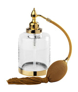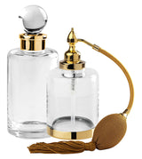 Included in the Cristal & Bronze Cristallin "lisse" (smooth/polished) collection, there is a large-ish perfume bottle - 12.2 fl. oz. - and an elegant room spray. Each is fabricated in crystal-clear crystal; the Perfume Bottle can be fabricated in 27 finishes, and the room spray in 7 different metal finishes. The term "lisse" refers to the smooth/polished work in the metal sections. Cristal&Bronze of France, maker of the finest in bathroom and boudoir accessories hand-fabricates each piece in the Cristallin Series in Chateau-Landon, near Paris, France. Finishes are impeccable and make for outstanding bathroom or boudoir pieces. Each piece is custom made for you in one of 27 metal finishes and shipped in about 7 weeks. Some sooner.