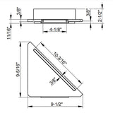 - Corner Shelf Dimensions - looking at the shelf from the shower: Right side with mounting bracket: 9-1/2" x Left side 9-5/16" x 11/16" overall height including mounting bracket. With Squeegee: Overall height 2-1/2". The Squeegee is 10-3/16" x 2-1/2".