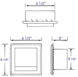 - Two-screw installation is quick and simple and plastic anchors are provided in the event they are necessary. Wall cut-out is 6" x 6".