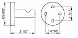 - The mounting plates have a 2.36" diameter, and the hooks project from the wall 2.52" - single, and 3.46" - double.
