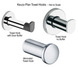 Finished in your choice of Chrome, Matte Black, or Stainless Steel, the Keuco Plan series towel hooks are configured in 3 versions. One version has a door buffer on the end to protect your doors if the hook is placed such that a door may hit it. The second is essentially the same as the "buffer" hook, but with an end cap without the door buffer. And finally, there's a simple, plain hook. The sleek lines and superb quality of a Keuco product will pamper you and captivate you with its flawless finish, careful craftsmanship, and hidden mounting arrangements.