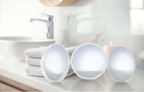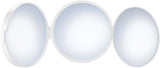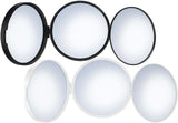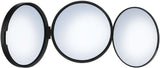 Smedbo Triple Travel Mirror has three sections. Each section has a 4" diameter and the each has a separate magnification power. 1x (no magnification), 5x, and 12x for super-critical work. The whole thing folds flat for travel and it's made of superior semi-indestructible ABS plastic. Available in Matte White or Matte Black.