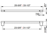 - Nominal / Actual sizes: 25" / 25-5/8" :: 34" / 33-1/2" Sizes are end to end, all inclusive.