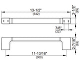 - Dimensions: 13-1/2" Overall Length. 11-13/16" Mounting Centers.
