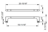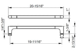 - Finished impeccably in Polished Chrome. Dimensions: 20-15/16" Length overall x 1" Thick x 2-13/16" Deep. Fits doors 1/4" to 3/8" Thick. Mounts on 19-11/16" Centers. Interior knob, if ordered is 1-3/8" Deep. Double handle is identical, inside the door.