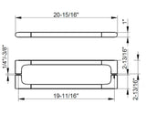 • Finished impeccably in Polished Chrome. Dimensions: 20-15/16" Length overall x 1" Thick x 2-13/16" Deep. Fits doors 1/4" to 3/8" Thick. Mounts on 19-11/16" Centers. Interior knob, if ordered is 1-3/8" Deep. Double handle is identical, inside the door.