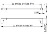- Dimensions: 24" Bar is 23.62" long. 32" Bar is 31.5" long. 40" Bar is 39.37" long. The bar is 1" Thick, top to bottom, and projects 2-13/16" from the wall.