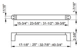 - Nominal / Actual sizes: 18" / 17-1/8" :: 25" / 25 " :: 32" / 32-7/8" :: 40" / 40-3/4". Sizes are end to end, all inclusive.