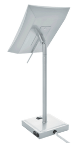 - Convenient AC outlet on the base. Weighted and padded base.