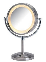 Jerdon 6x/1x Brushed Brass or Nickel Reversible Halo-Lighted Makeup Mirror