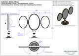 Four faces on Cistal&Bronze's "winged" vanity makeup mirror include a reversible center section that flips over from 3x magnification to 1x (no magnification) and two folding wings. It is beautifully hand-crafted and custom made in Chatau-Landon, France by talented and diligent craftsmen who fashion each mirror individually, leaving no stone unturned to create a flawless work of art. The "wings" fold over to cover the central mirror and the entire assembly sits on a weighted, padded base with a tilting mechanism to allow perfect positioning. There are 4 types of frames available as well as 34 different finishes. The frame choices on this page are "pearl" and corded (rope). On another page, there are plain and fluted frames. The mirror itself is made from superior quality glass and backed with pure silver, and with a magnification power of 3x that reverses to 1x (no magnification). The central mirror section is 8.4" Wide x 10" High, while the overall Height is 18.1". The wings are 7" Wide x 9.4" High. The entire assembly sits on a weighted and padded 7.5" Diameter base.