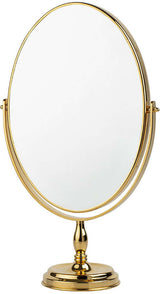 Cistal&Bronze's oval vanity makeup mirror is beautifully hand-crafted and custom made in Chatau-Landon, France by talented and meticulous craftsmen who fashion each mirror individually to create a flawless work of art. There are 4 types of frames available as well as 34 different finishes. The frames choices on this page are smooth and fluted. On another page, there are "pearl" and corded (rope) frames. The mirror itself is made from superior quality glass and backed with pure silver, and with a magnification power of 3x that reverses to 1x (no magnification). The mirror viewing area is 7.75" Wide x 11.2" High, while the overall height is 16.1" on a weighted and padded 4.5" Diameter base.