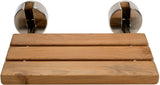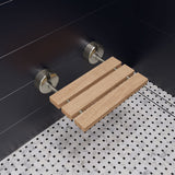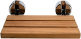 - Alfi brand folding ADA Teak Shower Seat with Polished Chrome or Brushed Nickel Accents has a thick solid Teak 16" wide seating Sufrace and easily folds up and down in the shower.