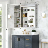 • Soft-close doors on euro-style hinges. Mirroring on the outside and inside of the doors and the back wall. Three interior tempered glass shelves are .3" Thick.
