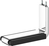 Keuco's Axess toilet paper roll holder is an accessory to the Keuco fold-down support rail, mounting directly to it. There's an integral roll brake so there's no worry about the roll, when the support bar is folded down. The roll holder is made in three decorator finishes to match the folding grab bar: Polished Chrome/Black, Matte Black, Polished Chrome/White.